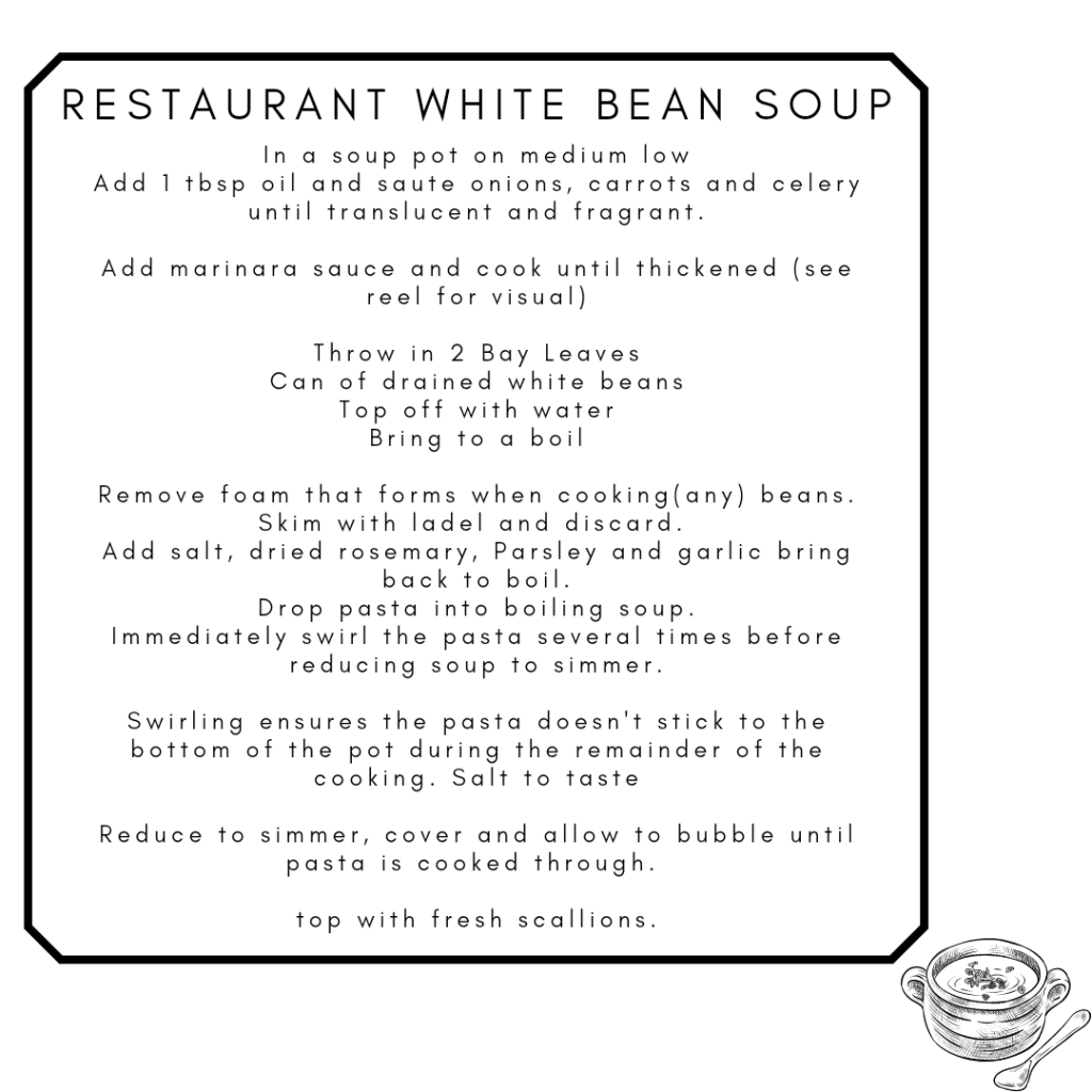 We call this “Restaurant White Bean Soup” because it is that good. it tastes like it has been cooking away for ages, but it has not and you are the soup hero. Did I mention we like soup here at The Wonky Stove? We do, and usually we lean to vegetable based soups, even though our family is not vegetarian.