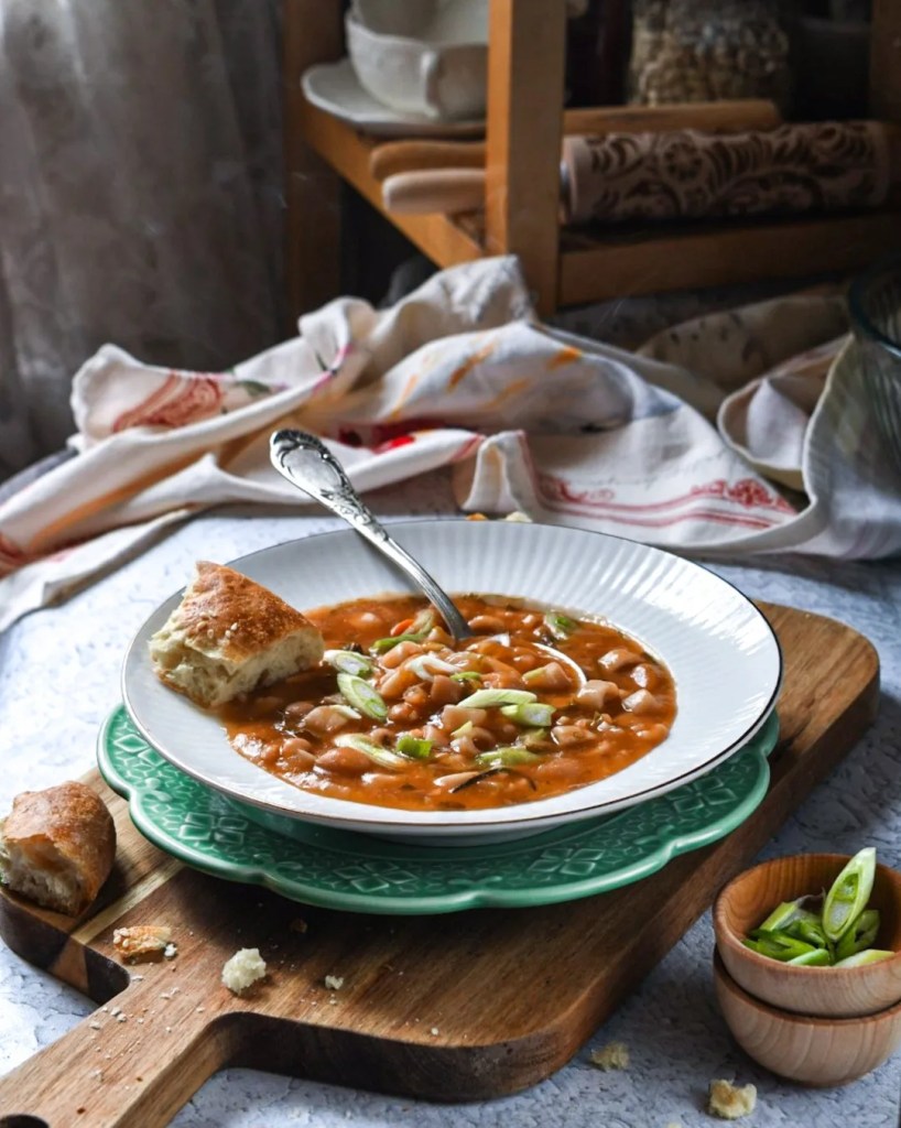 The steps matter. Don’t skip them! For a delicious vegetarian soup that is big on flavor and appeals to your omnivorous friends, mindful cooking is where it’s at. A few vegetables and a little time sauteing take white beans, canned or dried, from boring to bubbling pot of creamy thick satisfying vegetarian soup.