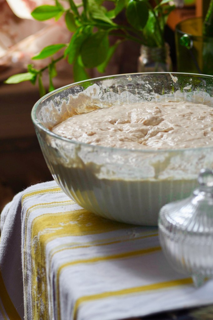 Stir to combine, cover with a cotton tea towel and place in a warm (but not hot) shaded area. Allow to sit on your counter overnight or at minimum 8 hours. Check on your starter a few hours in, if it is frothy and bubbly, you’re doing well, if it slightly frothy and has a small layer of liquid floating on top, add 1/2 cup flour and stir, your preferment was hungry and needed some more flour to power the yeast magic.