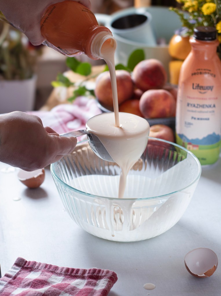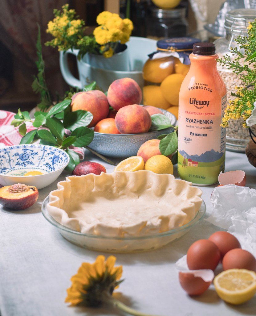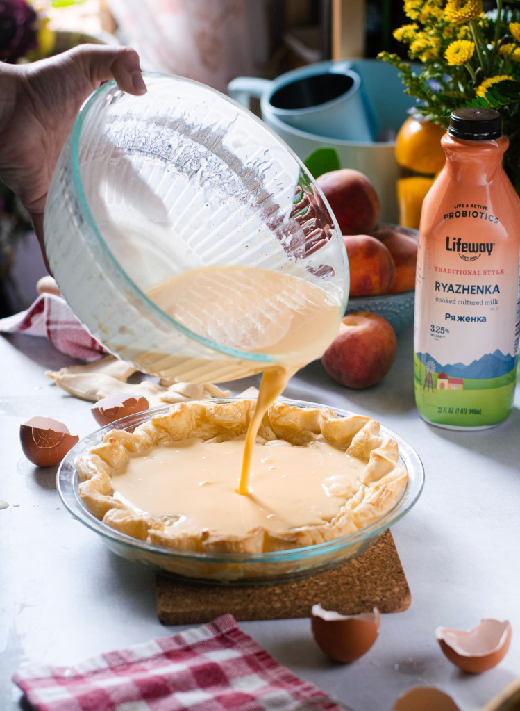 Inspired by Southern buttermilk pie. A Ukrainian twist on an American classic made with Ryzhenka, a baked cultured dairy drink. Serve as is or top with seasonal peaches.