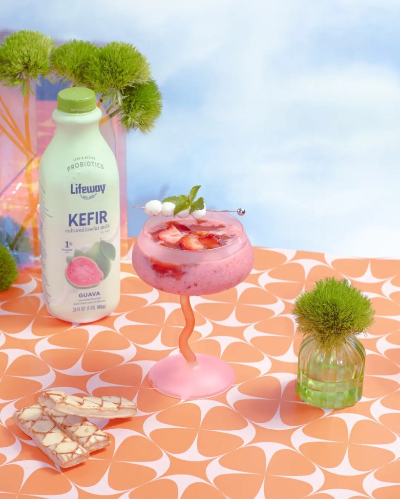 It’s the ideal just sweet enough dessert that is incredible quick to whip up and is git friendly with the addition of creamy guava flavored kefir. Make it a little bit more special by adding a swirl of guava paste and mozzarella pearls.