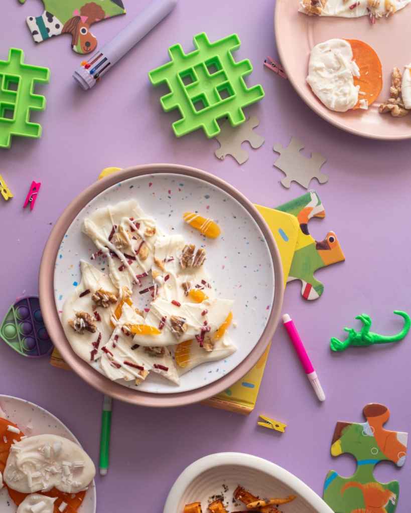 Melt 16oz of a good quality white chocolate and spread it over parchment or silicone mat.
