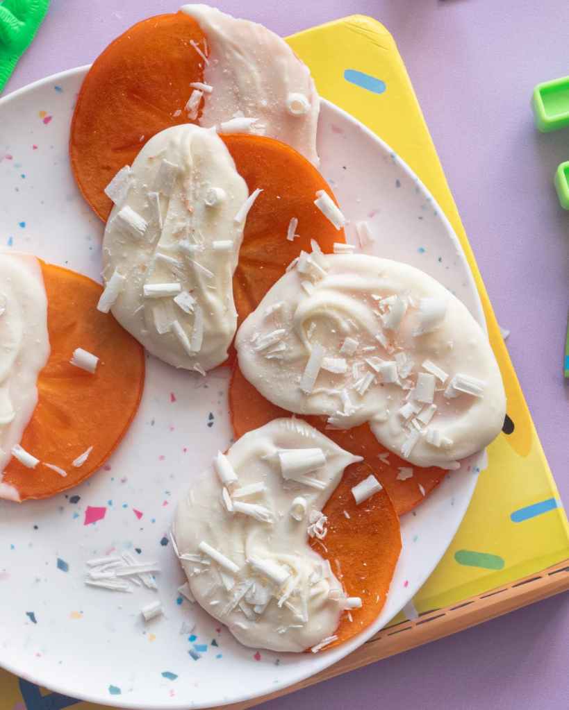 Snack pairing:White chocolate dipped persimmon rounds with a sprinkling of pink salt.