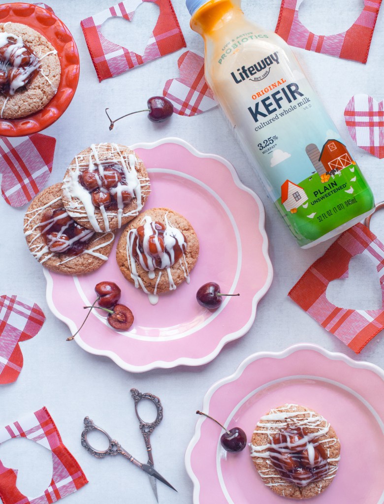 chewy crinkle cookies with a toasty malt flavor and cherry pie filling