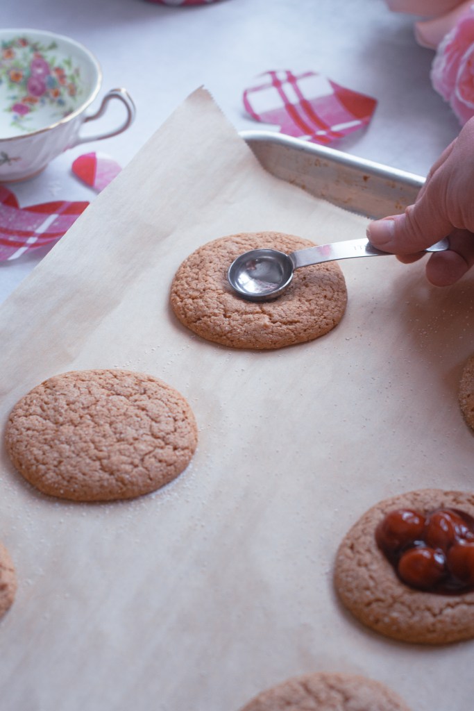 - Using a table spoon measure, apply gentle pressure to the center and fill with 3-4 cherries.